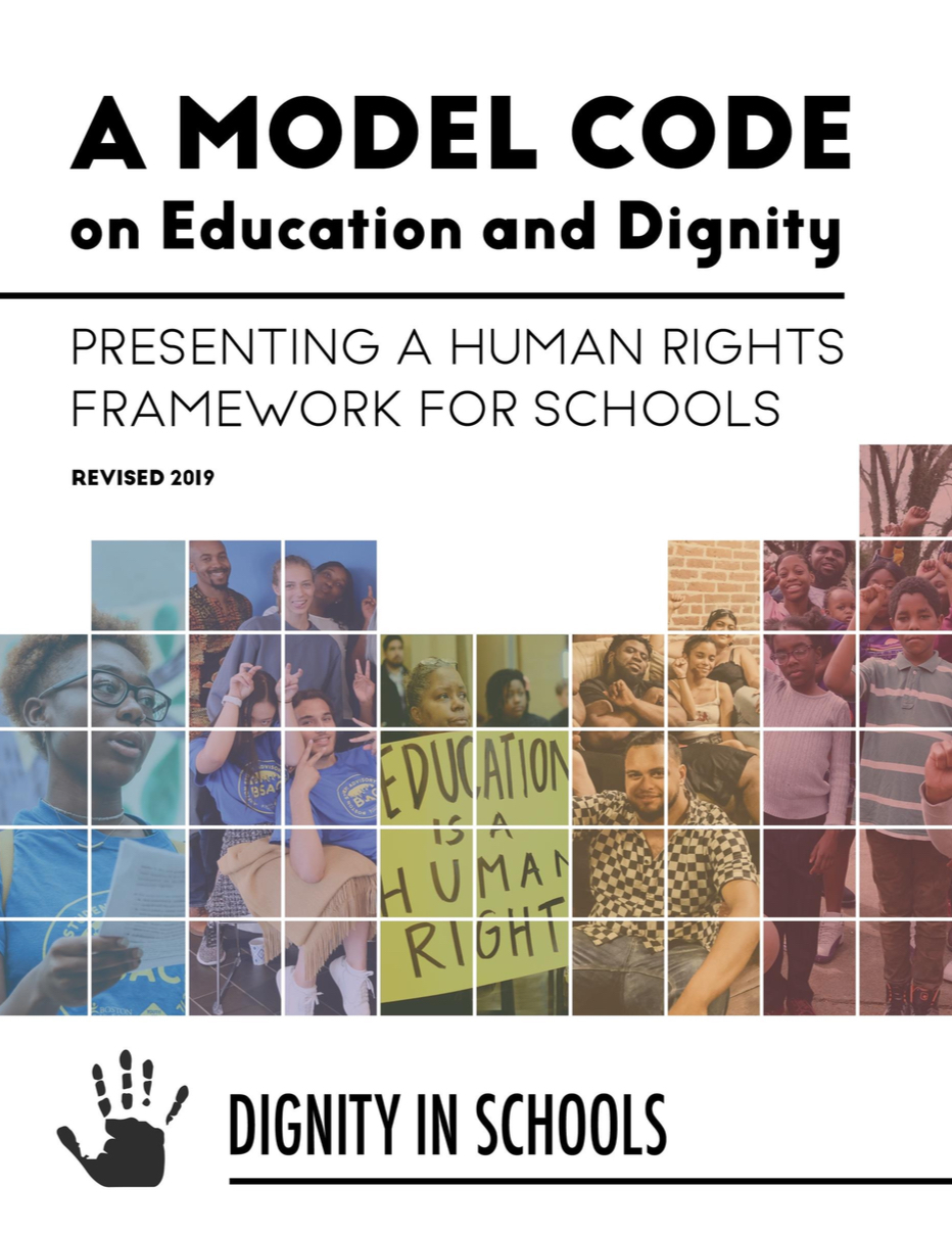 The cover image of the Dignity in Schools Campaign's Model Code on Education and Dignity, a Human Rights Framework for Schools.