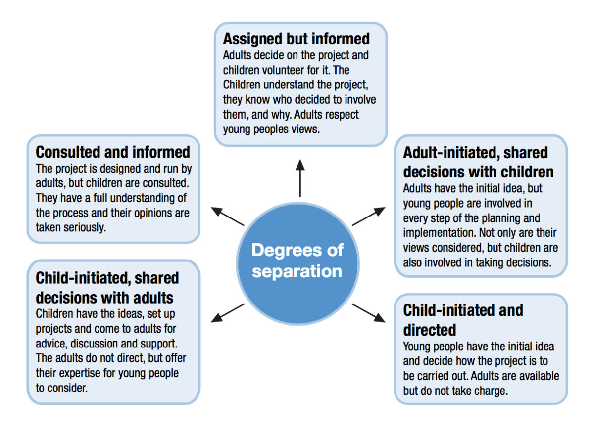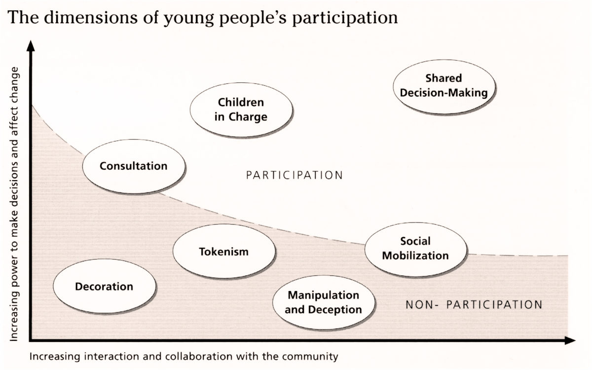 Hart, R. A. (1992). Children’s participation: From tokenism to citizenship. Florence, Italy: United Nations Children’s Fund International Child Development Centre.