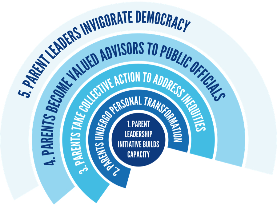 “When parent leaders speak out, their voices carry the authority of lived experience. They understand how gaps in social, health, and educational services limit their children’s future in critical ways. They learn to work with parents across boundaries of education, race, income, language, and culture. When elected officials and policy-makers listen to parent leaders, they become more aware of how their actions affect children and families, especially those who lack income or education, or who are marginalized by race, language, and culture. As public officials and parent leaders increasingly work together on issues and programs, collective action to improve conditions and outcomes for children gains momentum, resulting in more public forums, more public will to support education, and more formal inclusion of valued parent leaders in decision-making. Civic climate improves and the whole community benefits.”